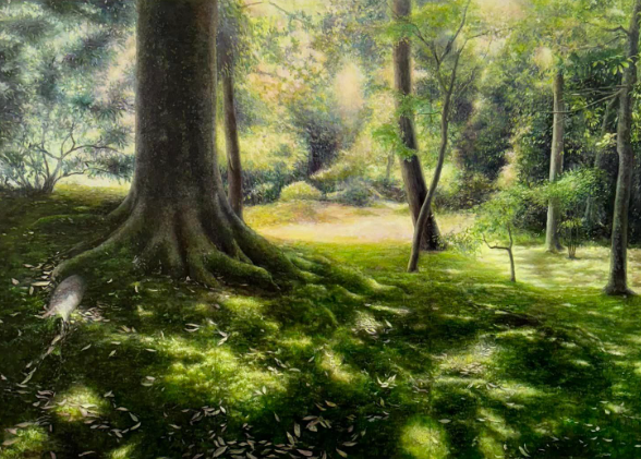 「今まですべての風景を描いていますが、これからはその中に人物を取入れた人物画を描きたいと思っています。里山の自然の命を描く。人の存在が感じられる自然。そんな作品作りに取り組んでいきたいですね」と話されます。来たる平成30年には、建設1300年を迎える兵主神社において、記念すべき個展を開催される予定の塩賀さん。「屏風や掛け軸などの伝統文化や、和の空間と調和する作品作りに挑戦したい」と意欲満々で構成を練っておられます。